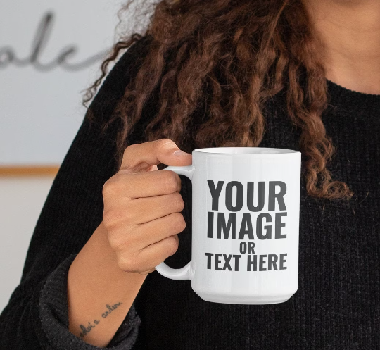 11oz Personalized custom ceramic coffee or tea mug - add your own photos or logos and text - FBA fulfillment available